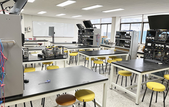 - 전동기 실습실 운영본 학과는 근교 타 대학교 전기공학과에서는 찾아보기 힘든 전동기 실습실을 운영하고 있습니다. 그러므로 학생들은 교과과정에서 학습한 전동기 관련 이론을 해당 실습실에서 진행되는 실험수업을 통해 실제로 구동 및 제어하는 경험을 해 볼 수 있습니다.
