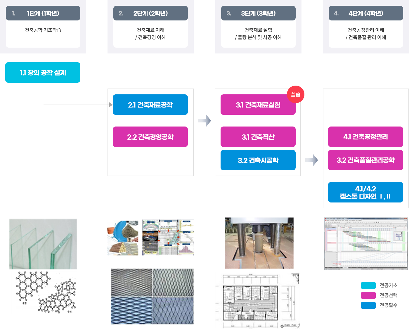 - 4단계(4학년): 건축공정관리, 품질관리에 관한 전공심화 및 종합설계