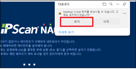2다운로드 중 아래와 같은 경고가 발생할 수 있으나 ‘계속’ 혹은 ‘유지’ 선택